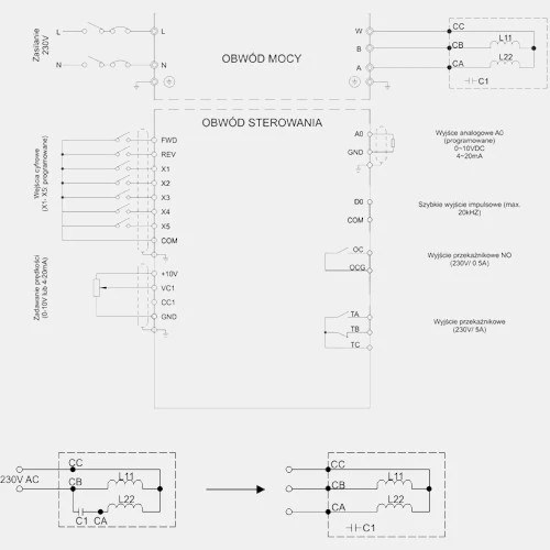Przemiennik częstotliwości FA-1F015 do silników jednofazowych