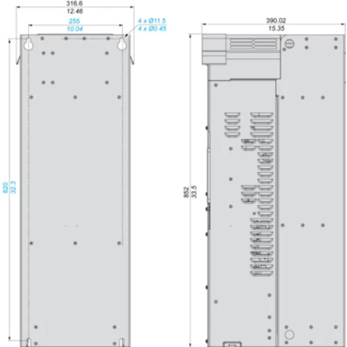 Falownik ATV610C160N4 Schneider Electric przeznaczony do pracy z trójfazowymi silnikami asynchronicznymi o mocy do 160 kW. Przetwornik zasilany jest napięciem 3x380...460 VAC. Moc przemiennika ATV610C16N4 przy pracy ciężkiej wynosi 132kW, zaś przy pracy lekkiej to 160kW. Prąd wejściowy tego inwertera to odpowiednio 284 A ND/237 A HD, zaś prąd wyjściowy 302 ND i 250 HD. Częstotliwość wyjściowa podana jest na 500 Hz, a znamionowa częstotliwość łączeniowa 4000 Hz. Komunikacja w falowniku Easy Altivar 610 odbywa się protokołem Modbus RTU po RS485. 3-fazowy falownik ATV610C16N4 został wyposażony w 6 wejść cyfrowych, 3 wyjścia przekaźnikowe, 3 wejścia analogowe prądowo-napięciowe oraz 1 wyjście analogowe prądowe i 1 wyjście analogowe napięciowe, z możliwości rozbudowy za pomocą kart rozszerzeń I/O. Schneider Electric zaleca stosowanie przy ATV610 ATV610C16N4 wyłącznika silnikowego NSX400-1.3M320 filtr du/dt VW3A5307oraz zabezpieczenia 400A. Ponadto przetwornik został wyposażony w zabudowany filtr EMC C3. Dodatkowo Schneider Electric daje możliwość rozbudowy falownika za pomocą kart rozszerzeń. W przypadku przetwornika ATV610C16N4 dostępne są: karty rozszerzeń wejść/wyjść VW3A3203, VW3A3204 oraz karta komunikacyjna ProfibusDP VW3A3607. Falownik ATV610C16N4 posiada obudowę o stopniu ochrony IP20 przystosowany a do montażu pionowego. Wymiary urządzenia to 850x300x375 mm, waga wynosi 85,5 kg.