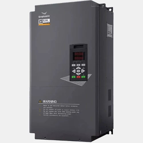 3-fazowy falownik wektorowy E280-4T2500G/4T2800P marki Simphoenix przeznaczony do pracy z silnikami trójfazowymi. Inwerter E280-4T2500G/4T2800P o mocy 250 kW HD/280 kW LD i prądzie wyjściowym 475/535 A. Napięcie zasilania przemiennika częstotliwości E280 Simphoenix mieści się w przedziale 323...437 VAC, a jego częstotliwość wynosi 50/60 Hz. Wektorowy przemiennik E280-4T2500G/4T2800P został wyposażony w: 5 wejść cyfrowych, 1 wejście analogowe napięciowe, jedno wejście analogowe prądowe, jedno wyjście cyfrowe, jedno wyjście przekaźnikowe, jedno wyjście analogowe prądowo-napięciowe. Urządzenie sterowane jest protokołem Modbus przez złącza RS485. E280 charakteryzują się częstotliwością wyjściową przy niskim zakresie pracy do 300 Hz, a wysokim zakresie do 400 Hz. Trójfazowy falownik 250 kW E280 Simphoenix posiada wbudowany moduł hamowania, co pozwala na bezpośrednie podłączenie rezystora hamowania o mocy 60000W i rezystencji 2,5 Ohm. Producent zaleca stosowanie w tym modelu filtra EMC NFI-600. Dodatkowo wektorowy przemiennik E280-4T2500G/4T2800P dysponuje regulatorem PID, dwoma wewnętrznymi licznikami i trzema timerami. Przykładem zastosowań przetworników E280 są: wciągarki, suwnice, transportery, frezarki, obrabiarki wrzecionowe, oraz maszyny do grawerowania. W przypadku E280-4T2500G/4T2800P zaleca się korzystanie z przewodu o przekroju 240mm2.