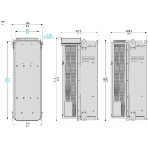 Falownik ATV610D30N4 Schneider Electric przeznaczony do pracy z trójfazowymi silnikami asynchronicznymi o mocy do 30 kW. Przetwornik zasilany jest napięciem 3x380...460 VAC. Moc przemiennika ATV610D30N4 przy pracy ciężkiej wynosi 22kW, zaś przy pracy lekkiej to 30 kW. Prąd wejściowy tego inwertera to odpowiednio 62,5 A ND/49,7 A HD, zaś prąd wyjściowy 61,5 ND i 46,3 HD. Częstotliwość wyjściowa podana jest na 500 Hz, a znamionowa częstotliwość łączeniowa 4000 Hz. Komunikacja w falowniku Easy Altivar 610 odbywa się protokołem Modbus RTU po RS485. 3-fazowy falownik ATV610D30N4 został wyposażony w 6 wejść cyfrowych, 3 wyjścia przekaźnikowe, 3 wejścia analogowe prądowo-napięciowe oraz 1 wyjście analogowe prądowe i 1 wyjście analogowe napięciowe, z możliwości rozbudowy za pomocą kart rozszerzeń I/O. Schneider Electric zaleca stosowanie przy ATV610 ATV610D30N4 wyłącznika silnikowego GV4L80 filtr du/dt VW3A5305 oraz zabezpieczenia 100A. Ponadto przetwornik został wyposażony w zabudowany filtr EMC C3. Dodatkowo Schneider Electric daje możliwość rozbudowy falownika za pomocą kart rozszerzeń. W przypadku przetwornika ATV610D30N4 dostępne są: karty rozszerzeń wejść/wyjść VW3A3203, VW3A3204 oraz karta komunikacyjna ProfibusDP VW3A3607. Falownik ATV610D30N4 posiada obudowę o stopniu ochrony IP20 przystosowany a do montażu pionowego. Wymiary urządzenia to 613x266x271 mm, waga wynosi 25,5 kg.