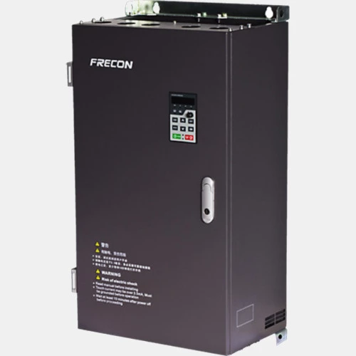 Dodatkowo producent wyposażył te falowniki w zabezpieczenie nadprądowe, nadnapięciowe, podnapięciowe, przed przegrzaniem czy przeciążeniowe. Kompaktowa obudowa falownika 400/450 kW FR200 przystosowana jest do montażu wewnątrz szaf sterowniczych, w środowisku wolnym od pyłów, gazów żrących oraz palnych, pary wodnej, mgły olejowej. Frecon podaje możliwość pracy przemienników w temperaturze od -10 do +40 stopni Celsjusza. Chłodzenie zapewnia wewnętrzny wentylator. 3-fazowy falownik FR200-4T-090G/110P został wyposażony w obudowę o stopniu ochrony IP20 i wymiarach: 1140x810x400 mm.