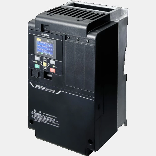 3-fazowy falownik Omron RX2 posiada: 9 wejść cyfrowych, 3 wejścia analogowe, 1 wyjście przekaźnikowe, 5 wyjścia binarne oraz 2 wyjścia analogowe. Komunikacja w tym modelu odbywa się protokołem Modbus po RS485.