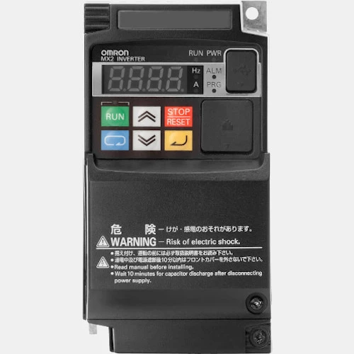 Falownik częstotliwości 3G3MX2-A4040-P-E Omron o mocy 4 kW. Standardowy falownik Omron MX23G3MX2-A4040-P-E zasilany jest napięciem 400V AC o częstotliwości 44...67 Hz.