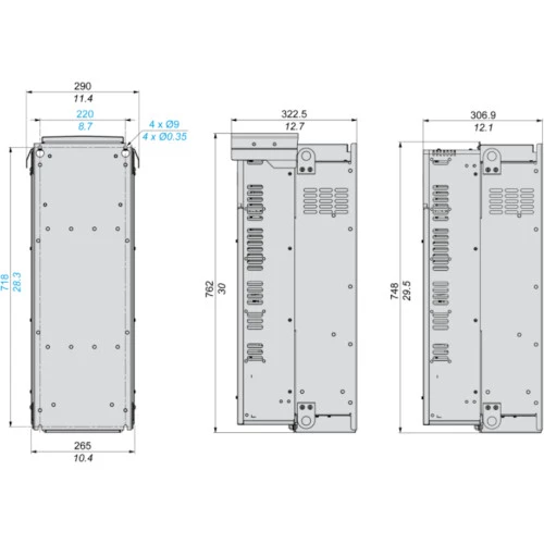 Falownik ATV610D90N4 Schneider Electric przeznaczony do pracy z trójfazowymi silnikami asynchronicznymi o mocy do 90 kW. Przetwornik zasilany jest napięciem 3x380...460 VAC. Moc przemiennika ATV610D90N4 przy pracy ciężkiej wynosi 75kW, zaś przy pracy lekkiej to 90 kW. Prąd wejściowy tego inwertera to odpowiednio 177,8 A ND/155,8 A HD, zaś prąd wyjściowy 173 ND i 145 HD. Częstotliwość wyjściowa podana jest na 500 Hz, a znamionowa częstotliwość łączeniowa 4000 Hz. Komunikacja w falowniku Easy Altivar 610 odbywa się protokołem Modbus RTU po RS485. 3-fazowy falownik ATV610D90N4 został wyposażony w 6 wejść cyfrowych, 3 wyjścia przekaźnikowe, 3 wejścia analogowe prądowo-napięciowe oraz 1 wyjście analogowe prądowe i 1 wyjście analogowe napięciowe, z możliwości rozbudowy za pomocą kart rozszerzeń I/O. Schneider Electric zaleca stosowanie przy ATV610 ATV610D90N4 wyłącznika silnikowego NSX250-MA220 filtr du/dt VW3A5306 oraz zabezpieczenia 200A. Ponadto przetwornik został wyposażony w zabudowany filtr EMC C3. Dodatkowo Schneider Electric daje możliwość rozbudowy falownika za pomocą kart rozszerzeń. W przypadku przetwornika ATV610D90N4 dostępne są: karty rozszerzeń wejść/wyjść VW3A3203, VW3A3204 oraz karta komunikacyjna ProfibusDP VW3A3607. Falownik ATV610D90N4 posiada obudowę o stopniu ochrony IP20 przystosowany a do montażu pionowego. Wymiary urządzenia to 762x290x323 mm, waga wynosi 53 kg.