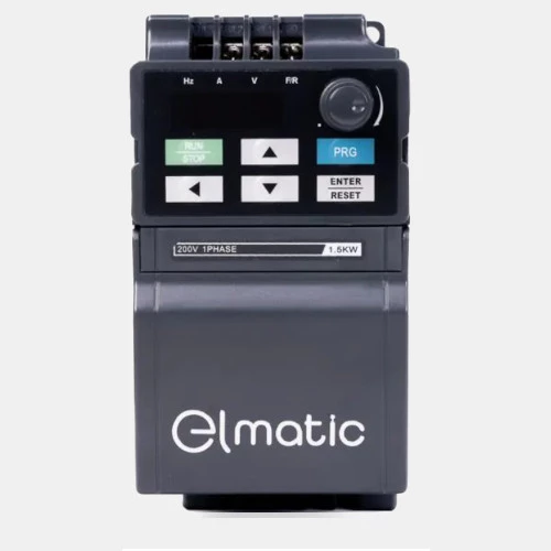 Falownik ED220-00R4G-C Elmatic dedykowany do współpracy z trójfazowymi asynchronicznymi silnikami indukcyjnymi o mocy 0,4 kW. Przemiennik częstotliwości 0,4 kW ED2000 zasilany jest napięciem 1x230 VAC o częstotliwości 50-60 Hz. Producent podaje częstotliwość wyjściową na poziomie 0,1...320 Hz. Prąd wejściowy tego przetwornika szacowany jest na poziomie 5,4A, natomiast prąd wyjściowy oscyluje wokół 2,4A. Inverter ED220-00R4G-C dysponuje następującymi trybami sterowania: bezczujnikowe, wektorowe, skalarne U/f. Falownik Elmatic ED220-00R4G-C został wyposażony w prosty PLC, posiada 6 wejść binarnych w tym 1 szybkie 100 kHz, 1 wejście analogowe prądowo-napięciowe, 1 wyjście cyfrowe, 1 wyjście przekaźnikowe oraz 1 wyjście analogowe prądowo-napięciowe. Przemiennik posiada również wbudowany filtr EMC. Komunikacja w tym przetworniku odbywa się protokołem Modbus RTU po RS485. Producent zaleca stosowanie rezystora hamowania o mocy 80 W i rezystancji 200 Ohm. W przypadku 1-fazowego falownika ED220-00R4G-C Elmatic proponuje wykorzystanie stycznika 9A, różnicówkę 10 A oraz przewód o przekroju 0,75mm2. Obudowa przetwornika ED220-00R4G-C została wykonana z tworzywa i cechuje się stopniem ochrony IP20 oraz montażem naściennym. Wymiary 1-fazowego falownika 0,4 kW ED2000 wynoszą 72x142x152 mm.