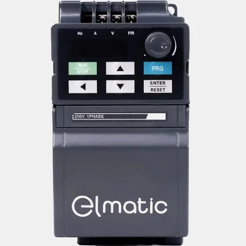 Falownik ED220-00R4G Elmatic dedykowany do współpracy z trójfazowymi asynchronicznymi silnikami indukcyjnymi o mocy 0,4 kW. Przemiennik częstotliwości 0,4 kW ED2000 zasilany jest napięciem 1x230 VAC o częstotliwości 50-60 Hz. Producent podaje częstotliwość wyjściową na poziomie 0,1...320 Hz. Prąd wejściowy tego przetwornika szacowany jest na poziomie 5,4A, natomiast prąd wyjściowy oscyluje wokół 2,4A. Inverter ED220-00R4G dysponuje następującymi trybami sterowania: bezczujnikowe, wektorowe, skalarne U/f. Falownik Elmatic ED220-00R4G został wyposażony w prosty PLC, posiada 6 wejść binarnych w tym 1 szybkie 100 kHz, 1 wejście analogowe prądowo-napięciowe, 1 wyjście cyfrowe, 1 wyjście przekaźnikowe oraz 1 wyjście analogowe prądowo-napięciowe. Komunikacja w tym przetworniku odbywa się protokołem Modbus RTU po RS485. Producent zaleca stosowanie rezystora hamowania o mocy 80 W i rezystancji 200 Ohm. W przypadku 1-fazowego falownika ED220-00R4G Elmatic proponuje wykorzystanie stycznika 9A, różnicówkę 10 A oraz przewód o przekroju 0,75mm2. Obudowa przetwornika ED220-00R4G została wykonana z tworzywa i cechuje się stopniem ochrony IP20 oraz montażem naściennym. Wymiary 1-fazowego falownika 0,4 kW ED2000 wynoszą 72x142x152 mm.