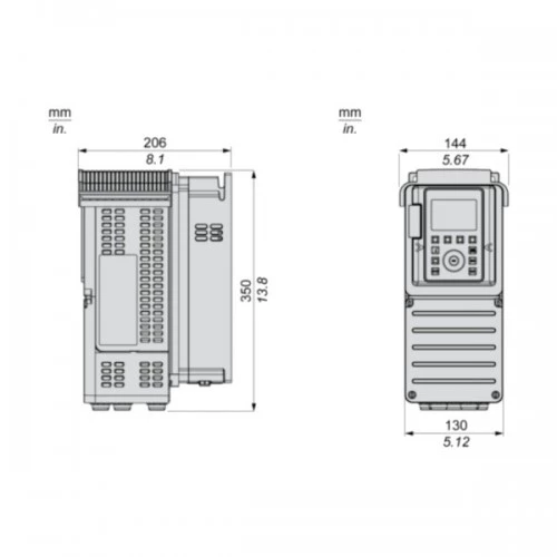 Falownik Altivar Process ATV930U07N4 Schneider Electric przeznaczony do pracy z trójfazowymi silnikami asynchronicznymi i synchronicznymi. 3-fazowy falownik ATV930U07N4 o mocy 0,75 kW przy obciążeniu lekkim i 0,37 kW przy obciążeniu ciężkim. Prąd wyjściowy wynosi odpowiednio 2,2 A przy lekkim obciążeniu i 1,5 A przy obciążeniu ciężkim. Częstotliwość wyjściowa dla falownika Altivar Process ATV900 wynosi 599 Hz. Inwerter ATV930U07N4 dysponuje 10 wejściami binarnymi, 2 wyjściami binarnymi, 3 wejściami analogowymi, 2 wyjściami analogowymi oraz 3 wyjściami przekaźnikowymi. Ponadto ATV900 dysponuje wejściem bezpieczeństwa STO. Komunikacja w falowniku ATV930U07N4 odbywa się protokołem Ethernet/IP i Modbus TCP. Przemiennik częstotliwości w wersji standardowej ATV930U07N4 został wyposażony w filtr EMC oraz czoper hamowania. Falownik ATV930U07N4 posiada obudowę przystosowaną do montażu naściennego pionowego i stopniu ochrony IP21. Wymiary falownika ATV930 2,2kW wynoszą: 350 x 144 x 206 mm i wadze 4,5 kg.