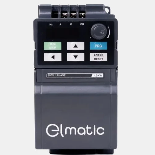 Falownik ED220-0R745G-C Elmatic dedykowany do współpracy z trójfazowymi asynchronicznymi silnikami indukcyjnymi o mocy 0,75 kW. Przemiennik częstotliwości 0,75 kW ED2000 zasilany jest napięciem 1x230 VAC o częstotliwości 50-60 Hz. Producent podaje częstotliwość wyjściową na poziomie 0,1...320 Hz. Prąd wejściowy tego przetwornika szacowany jest na poziomie 7,2A, natomiast prąd wyjściowy oscyluje wokół 4,5A. Inverter ED220-0R75G-C dysponuje następującymi trybami sterowania: bezczujnikowe, wektorowe, skalarne U/f. Falownik Elmatic ED220-0R75G-C został wyposażony w prosty PLC, posiada 6 wejść binarnych w tym 1 szybkie 100 kHz, 1 wejście analogowe prądowo-napięciowe, 1 wyjście cyfrowe, 1 wyjście przekaźnikowe oraz 1 wyjście analogowe prądowo-napięciowe. Przemiennik posiada również wbudowany filtr EMC. Komunikacja w tym przetworniku odbywa się protokołem Modbus RTU po RS485. Producent zaleca stosowanie rezystora hamowania o mocy 80 W i rezystancji 150 Ohm. W przypadku 1-fazowego falownika ED220-0R75G-C Elmatic proponuje wykorzystanie stycznika 12A, różnicówkę 16 A oraz przewód o przekroju 0,75mm2. Obudowa przetwornika ED220-0R75G-C została wykonana z tworzywa i cechuje się stopniem ochrony IP20 oraz montażem naściennym. Wymiary 1-fazowego falownika 0,75 kW ED2000 wynoszą 72x142x152 mm.
