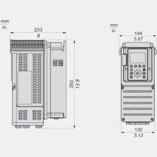 Falownik ATV630U07N4 Schneider Electric dedykowany do współpracy z trójfazowymi silnikami o obciążeniu do 2,2A. Przemiennik częstotliwości ATV630U07N4 o mocy 0,75kW przy obciążaniu lekkim oraz 0,37 kW przy obciążeniu ciężkim współpracuje zarówno w silnikami asynchronicznymi jaki i synchronicznymi. Przetwornik ATV630 w wykonaniu standardowym zasilany jest napięciem 380...480 VAC o częstotliwości 47,5...63 Hz. Prąd wyjściowy falownika ATV630U07N4wynosi odpowiednio 2,2A ND oraz 1,5 HD, zaś częstotliwość wyjściowa 500Hz. Komunikacja w falowniku ATV600 Schneider odbywa się po: Modbus TCP, Ethernet lub Modbus szeregowy. 3-fazowy falownik ATV600 ATV630U07N4 dysponuje 8 wejściami binarnymi, 3 wejściami analogowymi, 2 wyjściami analogowymi oraz 3 wyjściami przekaźnikowymi. Dodatkowo dysponuje wejściem bezpieczeństwa STO. Kompaktowa obudowa o stopniu ochrony IP21 przystosowana jest do montażu naściennego. Wymiary przetwornika ATV630U07N4 wynoszą: 144x350x203 mm, a jego waga to 4,5kg.