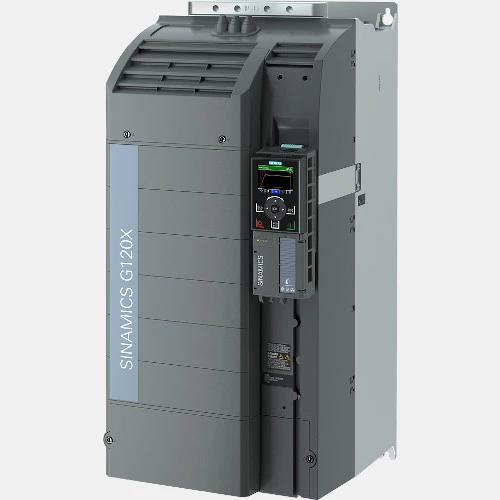 3-fazowy falownik 6SL3220-2YE46-0UB0 produkcji Siemens bez filtra o mocy 110 kW. Sinamics G120X6SL3220-2YE46-0UB0 zasilany jest napięciem mieszczącym się w przedziale 342...528V AC o częstotliwości 47...63 Hz. Pobór prądu przemiennika częstotliwości wynosi 198 A, zaś prąd wyjściowy 205 A. Wektorowy falownik Sinamics G120X wyposażony jest w: 6 wejść cyfrowych, 2 wejścia analogowe prądowo-napięciowe, 1 wejście temperaturowe, 2 wyjścia przekaźnikowe oraz 1 wyjście analogowe. Falownik 6SL3220-2YE46-0UB0 z panelem operatorskim BOP-2 i bez modułu I/O dysponuje komunikacją Ethernet oraz Modbus RTU/USS. Wymiary falownika Siemens to: 709 x 305 x 369 mm. Waga urządzenia wynosi 80kg.