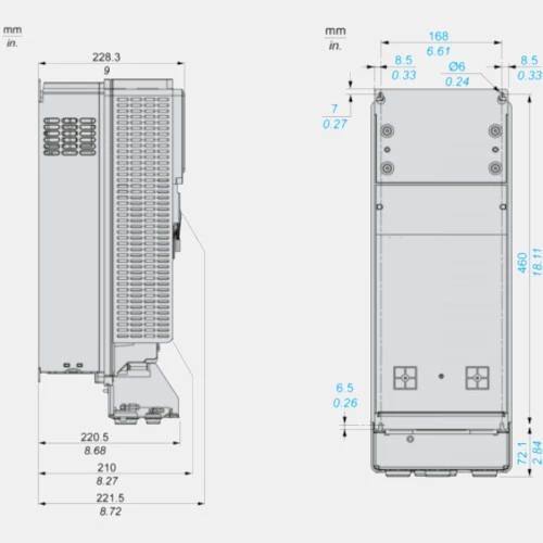 Falownik ATV630D15N4S chneider Electric dedykowany do współpracy z trójfazowymi silnikami o obciążeniu do 31,7A. Przemiennik częstotliwości ATV630D15N4 o mocy 15kW przy obciążaniu lekkim oraz 11 kW przy obciążeniu ciężkim współpracuje zarówno w silnikami asynchronicznymi jaki i synchronicznymi. Przetwornik ATV630 w wykonaniu standardowym zasilany jest napięciem 380...480 VAC o częstotliwości 47,5...63 Hz. Prąd wyjściowy falownika ATV630D15N4 wynosi odpowiednio 31,7A ND oraz 23,5 HD, zaś częstotliwość wyjściowa 500Hz. Komunikacja w falowniku ATV600 Schneider odbywa się po: Modbus TCP, Ethernet lub Modbus szeregowy. 3-fazowy falownik ATV600 ATV630D15N4 dysponuje 8 wejściami binarnymi, 3 wejściami analogowymi, 2 wyjściami analogowymi oraz 3 wyjściami przekaźnikowymi. Dodatkowo dysponuje wejściem bezpieczeństwa STO. Kompaktowa obudowa o stopniu ochrony IP21 przystosowana jest do montażu naściennego. Wymiary przetwornika ATV630D15N4 wynoszą: 211x546x232 mm, a jego waga to 13,6kg.