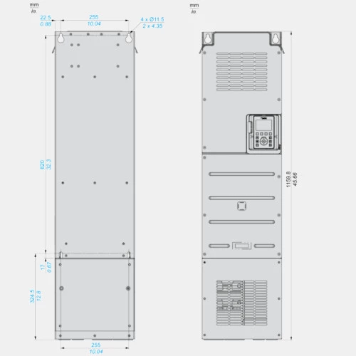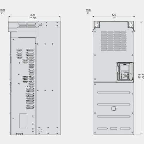 Falownik ATV630C16N4 Schneider Electric dedykowany do współpracy z trójfazowymi silnikami o obciążeniu do 302A. Przemiennik częstotliwości ATV630C16N4 o mocy 160kW przy obciążaniu lekkim oraz 132 kW przy obciążeniu ciężkim współpracuje zarówno w silnikami asynchronicznymi jaki i synchronicznymi. Przetwornik ATV630 w wykonaniu standardowym zasilany jest napięciem 380...480 VAC o częstotliwości 47,5...63 Hz. Prąd wyjściowy falownika ATV630C16N4 wynosi odpowiednio 302A ND oraz 250 HD, zaś częstotliwość wyjściowa 500Hz. Komunikacja w falowniku ATV600 Schneider odbywa się po: Modbus TCP, Ethernet lub Modbus szeregowy. 3-fazowy falownik ATV600 ATV630C16N4 dysponuje 8 wejściami binarnymi, 3 wejściami analogowymi, 2 wyjściami analogowymi oraz 3 wyjściami przekaźnikowymi. Dodatkowo dysponuje wejściem bezpieczeństwa STO. Kompaktowa obudowa o stopniu ochrony IP00 przystosowana jest do montażu naściennego. Wymiary przetwornika ATV630C16N4 wynoszą: 320x852x390 mm, a jego waga to 82kg.