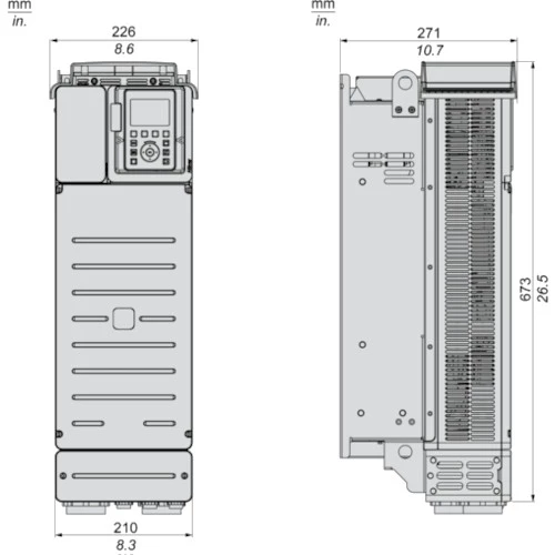 Falownik Altivar Process ATV930D37N4 Schneider Electric przeznaczony do pracy z trójfazowymi silnikami asynchronicznymi i synchronicznymi. 3-fazowy falownik ATV930D37N4 o mocy 37 kW przy obciążeniu lekkim i 30 kW przy obciążeniu ciężkim. Prąd wyjściowy wynosi odpowiednio 74,5 A przy lekkim obciążeniu i 61,5A przy obciążeniu ciężkim. Częstotliwość wyjściowa dla falownika Altivar Process ATV900 wynosi 599 Hz. Inwerter ATV930D37N4 dysponuje 10 wejściami binarnymi, 2 wyjściami binarnymi, 3 wejściami analogowymi, 2 wyjściami analogowymi oraz 3 wyjściami przekaźnikowymi. Ponadto ATV900 dysponuje wejściem bezpieczeństwa STO. Komunikacja w falowniku ATV930D37N4 odbywa się protokołem Ethernet/IP i Modbus TCP. Przemiennik częstotliwości w wersji standardowej ATV930D37N4 został wyposażony w filtr EMC oraz czoper hamowania. Falownik ATV930D37N4 posiada obudowę przystosowaną do montażu naściennego pionowego i stopniu ochrony IP21. Wymiary falownika ATV930 37kW wynoszą: 226 x 673 x 271 mm i wadze 28,2 kg.