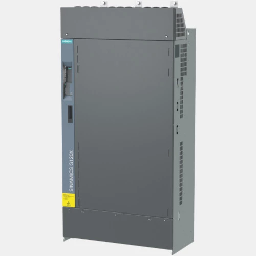 3-fazowy falownik 6SL3220-1YE64-1CB0 produkcji Siemens z filtrem C3 o mocy 500 kW. Sinamics G120X 6SL3220-1YE64-1CB0 zasilany jest napięciem mieszczącym się w przedziale 342...528V AC o częstotliwości 47...63 Hz. Pobór prądu przemiennika częstotliwości wynosi 924 A, zaś prąd wyjściowy 890 A. Wektorowy falownik Sinamics G120X wyposażony jest w: 6 wejść cyfrowych, 2 wejścia analogowe prądowo-napięciowe, 1 wejście temperaturowe, 2 wyjścia przekaźnikowe oraz 1 wyjście analogowe. Falownik 6SL3220-1YE64-1CB0 bez panelu operatorskiego z modułem I/O dysponuje komunikacją Ethernet oraz Modbus RTU/USS. Wymiary falownika Siemens to: 1621 x 801 x 393 mm. Waga urządzenia wynosi 250kg.