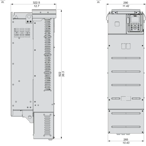 Falownik Altivar Process ATV930D55N4 Schneider Electric przeznaczony do pracy z trójfazowymi silnikami asynchronicznymi i synchronicznymi. 3-fazowy falownik ATV930D55N4 o mocy 55 kW przy obciążeniu lekkim i 45 kW przy obciążeniu ciężkim. Prąd wyjściowy wynosi odpowiednio 106 A przy lekkim obciążeniu i 88A przy obciążeniu ciężkim. Częstotliwość wyjściowa dla falownika Altivar Process ATV900 wynosi 599 Hz. Inwerter ATV930D55N4 dysponuje 10 wejściami binarnymi, 2 wyjściami binarnymi, 3 wejściami analogowymi, 2 wyjściami analogowymi oraz 3 wyjściami przekaźnikowymi. Ponadto ATV900 dysponuje wejściem bezpieczeństwa STO. Komunikacja w falowniku ATV930D55N4 odbywa się protokołem Ethernet/IP i Modbus TCP. Przemiennik częstotliwości w wersji standardowej ATV930D55N4 został wyposażony w filtr EMC oraz czoper hamowania. Falownik ATV930D55N4 posiada obudowę przystosowaną do montażu naściennego pionowego i stopniu ochrony IP21. Wymiary falownika ATV930 55kW wynoszą: 290 x 922 x 325,5 mm i wadze 57,5 kg.