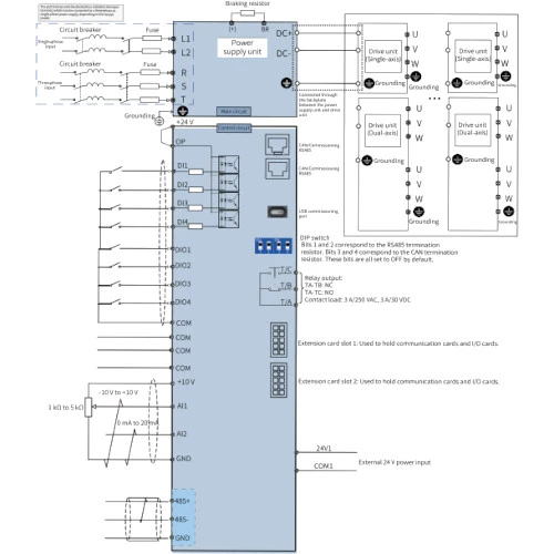 Modułowy falownik MD800 Inovance MD800-1-4T17 zasilany jest napięciem 3x400 VAC. Napęd jednoosiowy MD800-1-4T17 o mocy 7,5kW przy obciążeniu ciężkim i 11 kW przy obciążeniu lekkim. Prąd wyjściowy dla tego napędu wynosi odpowiednio 17A HD oraz 21A ND. Przemiennik MD800-1-4T17 pobiera prąd w wysokości 26A przy obciążeniu ciężkim oraz 21,2A przy obciążeniu lekkim. Moduł napędowy MD800-1-4T17 w wykonaniu bez STO został wyposażony w 8 wejść cyfrowych, w tym 4 mogą pracować jako wyjścia cyfrowe, 1 wejście analogowe napięciowe, 1 wejście analogowe prądowe, oraz jedno wyjście przekaźnikowe. W standardzie falowniki MD800 dysponują komunikacją: CANopen, CANlink oraz Modbus RTU. Dodatkowo możliwości urządzenia można rozbudować za pomocą kart wejść/wyjść oraz kart komunikacyjnych. Częstotliwość wyjściowa dla falowników MD800 Inovance szacowana jest na poziomie 590 Hz.