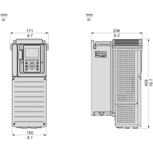 Falownik Altivar Process ATV930U75N4 Schneider Electric przeznaczony do pracy z trójfazowymi silnikami asynchronicznymi i synchronicznymi. 3-fazowy falownik ATV930U75N4 o mocy 7,5 kW przy obciążeniu lekkim i 5,5 kW przy obciążeniu ciężkim. Prąd wyjściowy wynosi odpowiednio 16,5 A przy lekkim obciążeniu i 12,7A przy obciążeniu ciężkim. Częstotliwość wyjściowa dla falownika Altivar Process ATV900 wynosi 599 Hz. Inwerter ATV930U75N4 dysponuje 10 wejściami binarnymi, 2 wyjściami binarnymi, 3 wejściami analogowymi, 2 wyjściami analogowymi oraz 3 wyjściami przekaźnikowymi. Ponadto ATV900 dysponuje wejściem bezpieczeństwa STO. Komunikacja w falowniku ATV930U75N4 odbywa się protokołem Ethernet/IP i Modbus TCP. Przemiennik częstotliwości w wersji standardowej ATV930U75N4 został wyposażony w filtr EMC oraz czoper hamowania. Falownik ATV930U75N4 posiada obudowę przystosowaną do montażu naściennego pionowego i stopniu ochrony IP21. Wymiary falownika ATV930 7,5kW wynoszą: 171 x 409 x 236 mm i wadze 7,7 kg.