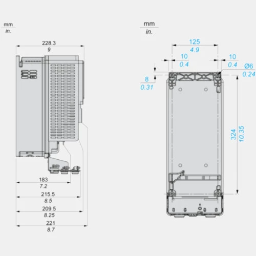Falownik ATV630U75N4 Schneider Electric dedykowany do współpracy z trójfazowymi silnikami o obciążeniu do 16,5A. Przemiennik częstotliwości ATV630U75N4 o mocy 7,5kW przy obciążaniu lekkim oraz 5,5 kW przy obciążeniu ciężkim współpracuje zarówno w silnikami asynchronicznymi jaki i synchronicznymi. Przetwornik ATV630 w wykonaniu standardowym zasilany jest napięciem 380...480 VAC o częstotliwości 47,5...63 Hz. Prąd wyjściowy falownika ATV630U75N4 wynosi odpowiednio 16,5A ND oraz 12,7 HD, zaś częstotliwość wyjściowa 500Hz. Komunikacja w falowniku ATV600 Schneider odbywa się po: Modbus TCP, Ethernet lub Modbus szeregowy. 3-fazowy falownik ATV600 ATV630U75N4 dysponuje 8 wejściami binarnymi, 3 wejściami analogowymi, 2 wyjściami analogowymi oraz 3 wyjściami przekaźnikowymi. Dodatkowo dysponuje wejściem bezpieczeństwa STO. Kompaktowa obudowa o stopniu ochrony IP21 przystosowana jest do montażu naściennego. Wymiary przetwornika ATV630U75N4 wynoszą: 171x409x233 mm, a jego waga to 7,7kg.