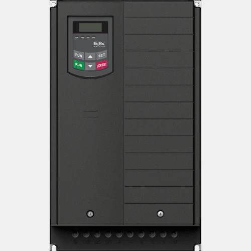 Falownik E2200-0900T3 Eura Drives o mocy 90 kW przeznaczony do pracy z trójfazowymi silnikami asynchronicznymi i synchronicznymi PMSM. Napięcie zasilania wynosi 198...264 V AC. Częstotliwość napięcia zasilania wynosi 47,5...63Hz. Wektorowy falownik E2200-0900T3 o deklarowanej sprawności na poziomie 98% został wyposażony w 8 wejść cyfrowych, 2 wejścia analogowe, 2 wyjście cyfrowe, 1 wyjście przekaźnikowe oraz 2 wyjścia analogowe. Komunikacja w falownikach E2200 wersji F5 odbywa się po EtherCAT lub Modbus. Częstotliwość wyjściowa dla falowników serii E2200 wynosi 0...590 Hz. Prąd wyjściowy dla wektorowego falownika 90 kW E2200 Eura wynosi 180 A. Producent zaleca stosowanie zabezpieczenia nadprądowego B6. Trójfazowy falownik 90 kW E2200 posiada kompaktową obudowę z tworzywa wyposażoną w filtr sieciowy. Wymiary falownik E2200-0900T3 wynoszą: 410x300x765 mm, zaś jego waga wynosi 50kg. Wymiary montażowe natomiast wynoszą: 370x740 mm, śruby montażowe M10. System chłodzenia w przypadku tego modelu jest wymuszony.