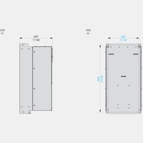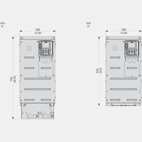 Falownik ATV630D90Y6 Schneider Electric dedykowany do współpracy z trójfazowymi silnikami o obciążeniu do 83A. Przemiennik częstotliwości ATV630D90Y6 o mocy 90kW przy obciążaniu lekkim oraz 75 kW przy obciążeniu ciężkim współpracuje zarówno w silnikami asynchronicznymi jaki i synchronicznymi. Przetwornik ATV630 w wykonaniu standardowym zasilany jest napięciem 500...690 VAC o częstotliwości 47,5...63 Hz. Prąd wyjściowy falownika ATV630D90Y6 wynosi odpowiednio 83A ND oraz 108 HD, zaś częstotliwość wyjściowa 500Hz. Komunikacja w falowniku ATV600 Schneider odbywa się po: Modbus TCP, Ethernet lub Modbus szeregowy. 3-fazowy falownik ATV600 ATV630D90Y6 dysponuje 8 wejściami binarnymi, 3 wejściami analogowymi, 2 wyjściami analogowymi oraz 3 wyjściami przekaźnikowymi. Dodatkowo dysponuje wejściem bezpieczeństwa STO. Kompaktowa obudowa o stopniu ochrony IP00 przystosowana jest do montażu naściennego. Wymiary przetwornika ATV630D90Y6 wynoszą: 331x630x297 mm, a jego waga to 53kg.
