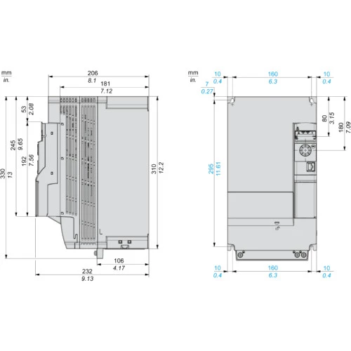 3-fazowy falownik ATV320D11N4B sterowany wektorowo marki Schneider Electric o mocy 11 kW. Przemiennik Schneider ATV320 przystosowany jest do pracy z silnikami asynchronicznymi oraz synchronicznymi. Altivar Machine 320 ATV320D11N4B zasilany jest napięciem 400V AC o częstotliwości 50/60 Hz. Pobór prądu przemiennika częstotliwości wynosi 36,6 A. Trójfazowy falownik ATV320 wyposażony jest w 7 wejść cyfrowych, 3 wejścia analogowe prądowo-napięciowe, 2 wyjścia przekaźnikowe, 1 wyjście cyfrowe oraz 1 wyjście analogowe prądowo-napięciowe. Dodatkowo ten model dysponuje zabudowanym wejściem bezpieczeństwa STO i filtrem EMC. Przetwornik ATV320D11N4B Schneider dysponuje wbudowanym portem RS422 z komunikacją Modbus oraz CANopen. Konfiguracja ATV320D11N4B ATV320 odbywa się przy pomocy intuicyjnego narzędzia SoMove. Producent deklaruje możliwość pracy invertera ATV320 w temperaturze -10...50 stopni Celsjusza. Falownik ATV320D11N4B posiada obudowę o stopniu ochrony IP20 oraz wymiarach 330 x 180 x 232 mm, natomiast waga urządzenia to 8,7 kg. Falowniki Altivar 320 sprawdzają się w maszynach pakujących, podajnikach czy aplikacjach dźwigowych.