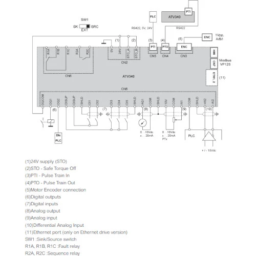 3-fazowy falownik ATV340D22N4E sterowany wektorowo producenta Schneider Electric o mocy 22 kW. Falownik ATV340 zasilany jest napięciem 400V AC o częstotliwości 50/60 Hz. Pobór prądu przemiennika częstotliwości wynosi 63,5 A. Falownik wyposażony jest w 2 wyjścia binarne, 1 wyjście analogowe, 2 wyjścia przekaźnikowe, 7 wejść binarnych oraz 2 wejścia analogowe.. Ponadto inwerter można rozbudować o dodatkowe karty wejść/wyjść oraz komunikacyjne. Przemiennik częstotliwości ATV340 Schneider Electric ma wbudowany filtr EMC oraz wejście bezpieczeństwa STO. ATV340D22N4E Schneider Electric dysponuje wbudowanym portem Ethernet oraz RS485, komunikacja falownika przebiega z wykorzystaniem protokołu Modbus. ATV340D22N4E ATV340 Schneider Electric konfigurowany jest za pomocą oprogramowania SoMove. Inwerter ATV340D22N4E o stopniu ochrony IP20 i możliwością pracy w temperaturze -15...60 °C. Wymiary falownika ATV340D22N4E wynoszą 385 x 180 x 249 mm, natomiast waga urządzenia to 10,2 kg. Falownik ATV340 ceniony jest za możliwość instalacji jeden obok drugiego. Przeznaczone są do pracy z silnikami synchronicznymi, asynchronicznymi. Przemienniki ATV340 Schneider sprawdzają się przy maszynach pakujących czy maszynach do obróbki materiału. Ponadto często spotykane są w aplikacjach dźwigowych.