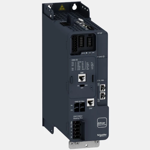 3-fazowy falownik ATV340U22N4E sterowany wektorowo producenta Schneider Electric o mocy 2,2 kW. Falownik ATV340 zasilany jest napięciem 400V AC o częstotliwości 50/60 Hz. Pobór prądu przemiennika częstotliwości wynosi 8,4 A. Falownik wyposażony jest w 2 wyjścia binarne, 1 wyjście analogowe, 2 wyjścia przekaźnikowe, 7 wejść binarnych oraz 2 wejścia analogowe.. Ponadto inwerter można rozbudować o dodatkowe karty wejść/wyjść oraz komunikacyjne. Przemiennik częstotliwości ATV340 Schneider Electric ma wbudowany filtr EMC oraz wejście bezpieczeństwa STO. ATV340U22N4E Schneider Electric dysponuje wbudowanym portem Ethernet oraz RS485, komunikacja falownika przebiega z wykorzystaniem protokołu Modbus. ATV340U22N4E ATV340 Schneider Electric konfigurowany jest za pomocą oprogramowania SoMove. Inwerter ATV340U22N4E o stopniu ochrony IP20 i możliwością pracy w temperaturze -15...60 °C. Wymiary falownika ATV340U22N4E wynoszą 270 x 85 x 232,5 mm, natomiast waga urządzenia to 1,8 kg. Falownik ATV340 ceniony jest za możliwość instalacji jeden obok drugiego. Przeznaczone są do pracy z silnikami synchronicznymi, asynchronicznymi. Przemienniki ATV340 Schneider sprawdzają się przy maszynach pakujących czy maszynach do obróbki materiału. Ponadto często spotykane są w aplikacjach dźwigowych.