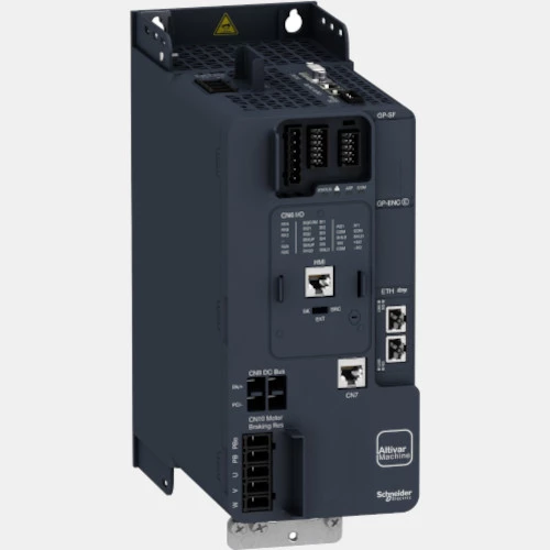 3-fazowy falownik ATV340U75N4E sterowany wektorowo producenta Schneider Electric o mocy 7,5 kW. Falownik ATV340 zasilany jest napięciem 400V AC o częstotliwości 50/60 Hz. Pobór prądu przemiennika częstotliwości wynosi 25,6 A. Falownik wyposażony jest w 2 wyjścia binarne, 1 wyjście analogowe, 2 wyjścia przekaźnikowe, 7 wejść binarnych oraz 2 wejścia analogowe.. Ponadto inwerter można rozbudować o dodatkowe karty wejść/wyjść oraz komunikacyjne. Przemiennik częstotliwości ATV340 Schneider Electric ma wbudowany filtr EMC oraz wejście bezpieczeństwa STO. ATV340U75N4E Schneider Electric dysponuje wbudowanym portem Ethernet oraz RS485, komunikacja falownika przebiega z wykorzystaniem protokołu Modbus. ATV340U75N4E ATV340 Schneider Electric konfigurowany jest za pomocą oprogramowania SoMove. Inwerter ATV340U75N4E o stopniu ochrony IP20 i możliwością pracy w temperaturze -15...60 °C. Wymiary falownika ATV340U75N4E wynoszą 270 x 110 x 234 mm, natomiast waga urządzenia to 3 kg. Falownik ATV340 ceniony jest za możliwość instalacji jeden obok drugiego. Przeznaczone są do pracy z silnikami synchronicznymi, asynchronicznymi. Przemienniki ATV340 Schneider sprawdzają się przy maszynach pakujących czy maszynach do obróbki materiału. Ponadto często spotykane są w aplikacjach dźwigowych.