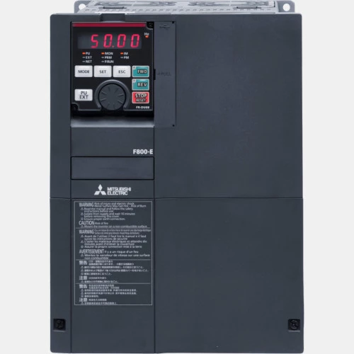 3-fazowy falownik FR-F840-00310-E2-60 serii FR-F800 producenta Mitsubishi Electric o mocy 15 kW. Inwerter został wyposażony w 12 wejść binarnych, 3 wejścia analogowe, 2 wyjścia analogowe, 5 wyjść tranzystorowych oraz 2 wyjścia przekaźnikowe. Falownik FR-D800 dysponuje wejściem bezpieczeństwa STO, filtrem EMC oraz posiada funkcje sterownika PLC i wstępnego napełniania. Przemiennik częstotliwości Mitsubishi Electric posiada również wbudowany port Ethernet i gniazdo USB. 3-fazowy falownik ma zabudowany wyświetlacz LED w 5 cyfrowej konfiguracji. Przemiennik FR-F840-00310-E2-60 Mitsubishi Electric został wykonany w obudowie o stopniu ochrony IP20 i wymiarach 300 x 220 x 190 mm. Natomiast waga przetwornika FR F800 wynosi 8,3 kg. Cechą charakterystyczną falownika FR-F840-00310-E2-60 jest fakt, że posiada on szerokie możliwości komunikacyjne oraz obsługuje liczne porty komunikacyjne.