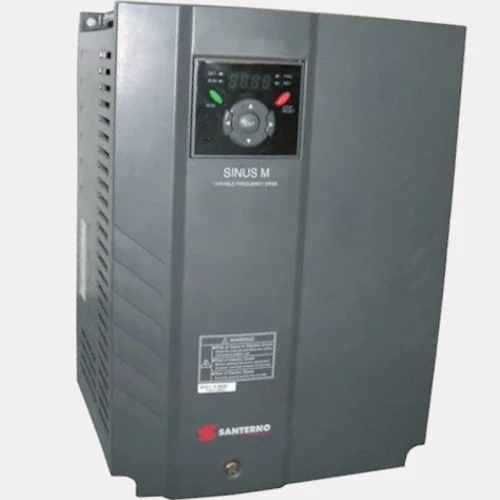 Trójfazowy falownik SINUS M 0025 4T BA2K2 sterowany wektorowo marki Santerno o mocy 18,5 kW. Przemiennik Santerno SINUS M przystosowany jest do pracy z 3-fazowym silnikiem asynchronicznym. SINUS M 0025 4T BA2K2 zasilany jest napięciem 400V AC o częstotliwości 50/60 Hz. Prąd wyjściowy przemiennika wynosi 39 A. Producent deklaruje przeciążalność przetwornika na poziomie 150% przez 60 sekund i 200% przez 5 sekund. 3-fazowy falownik SINUS M wyposażony jest w 8 wejść cyfrowych, 2 wejścia analogowe prądowo-napięciowe, 2 wyjścia cyfrowe oraz 1 wyjście analogowe napięciowe. Zabudowany moduł hamowania pozwala na podłączenie do falownika SINUS M 0025 4T BA2K2 rezystora hamowania o parametrach 20 Ohm 4000 W. Przetwornik SINUS M 0025 4T BA2K2 Santerno dysponuje wbudowanym portem RS485 z komunikacją Modbus. Konfiguracja SINUS M 0025 4T BA2K2 SINUS M odbywa się przy pomocy intuicyjnego narzędzia Remote Drive. Producent deklaruje możliwość pracy invertera SINUS M w temperaturze -10...50 stopni Celsjusza. Falownik SINUS M 0025 4T BA2K2 posiada obudowę o stopniu ochrony IP20 oraz wymiarach 410 x 260 x 208,5 mm, natomiast waga urządzenia to 13,3 kg. Falowniki Santerno SINUS M sprawdzają się w przenośnikach taśmowych, wiertarkach stołowych czy aplikacjach wentylatorowych.