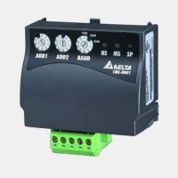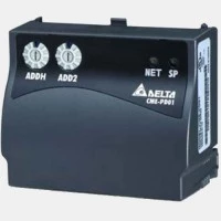 Falownik o symbolu VFD004EL43A firmy Delta Electronics. Produkt serii EL o napięciu 460VAC 3-fazy o mocy 0,4kW i prądzie wyjściowym 1,5A. Dzięki wysokiej precyzji detekcji prądu jest często stosowany w układach niewymagających sterowania wektorowego.