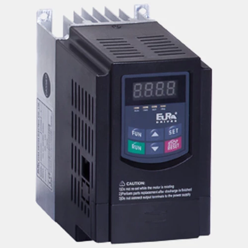 Falownik E800-0007T3 renomowanej firmy Eura Drives E800. Urządzenie o mocy 0,75kW, o prądzie wyjściowym 2A zasilany prądem 3-fazowym 460VAC skonstruowane jest z komponentów wysokiej jakości. Wyposażony w 5 wejść binarnych, 2 wejścia analogowe i po jednym wyjściu tranzystorowym, przekaźnikowym i analogowym.