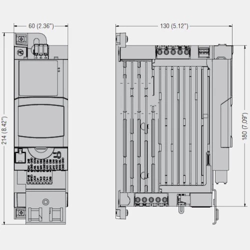 Falownik 3-fazowy VLB30007A480 cenionej marki Lovato Electric o mocy 0,75 kW oraz poborze prądu 3,3 A. Przemiennik VLB3 zasilany jest napięciem 400V AC o częstotliwości napięcia zasilającego 50/60 Hz. Inwerter pochodzący z serii VLB3 wyposażono w 5 wejść binarnych, 2 wejścia analogowe (0...20/4...20mA lub 10...10V) 2 wyjścia binarne, gdzie jedno jest przekaźnikowe oraz 1 wyjście analogowe (0/4...20mA lub 0...10V). Falownik VLB30007A480 w swoim wyposażeniu posiada filtr EMC, regulator PID, funkcje lotnego startu oraz wejście PTC. Ponadto przetwornik dysponuje portem RS485 z komunikacją Modbus-RTU. Przemiennik częstotliwości VLB30007A480 VLB3 Lovato Electric stworzony został z przeznaczeniem do pracy z silnikami asynchronicznymi oraz synchronicznymi z magnesami trwałymi. Trójfazowy falownik wykonany został w obudowie o wymiarach 214 x 60 x 130 mm oraz wadze 1,1 kg. Producent stopień ochrony falownika VLB30007A480 podaje na IP20. Przetwornik Lovato Electric sprawdza się we wszystkich aplikacjach napędowych.