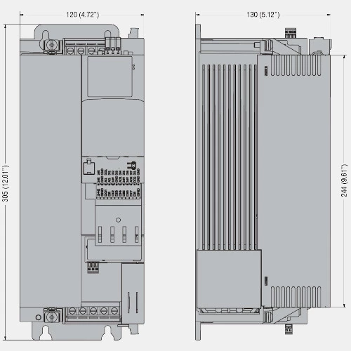 Falownik 3-fazowy VLB30075A480 cenionej marki Lovato Electric o mocy 7,5 kW oraz poborze prądu 20 A. Przemiennik VLB3 zasilany jest napięciem 400V AC o częstotliwości napięcia zasilającego 50/60 Hz. Inwerter pochodzący z serii VLB3 wyposażono w 5 wejść binarnych, 2 wejścia analogowe (0...20/4...20mA lub 10...10V) 2 wyjścia binarne, gdzie jedno jest przekaźnikowe oraz 1 wyjście analogowe (0/4...20mA lub 0...10V). Falownik VLB30075A480 w swoim wyposażeniu posiada filtr EMC, regulator PID, funkcje lotnego startu oraz wejście PTC. Ponadto przetwornik dysponuje portem RS485 z komunikacją Modbus-RTU. Przemiennik częstotliwości VLB30075A480 VLB3 Lovato Electric stworzony został z przeznaczeniem do pracy z silnikami asynchronicznymi oraz synchronicznymi z magnesami trwałymi. Dedykowany jest do pracy z silnikami asynchronicznymi jak i synchronicznymi z magnesami trwałymi. Trójfazowy falownik wykonany został w obudowie o wymiarach 305 x 120 x 130 mm oraz wadze 3,95 kg. Producent stopień ochrony falownika VLB30075A480 podaje na IP20. Przetwornik Lovato Electric sprawdza się we wszystkich aplikacjach napędowych.