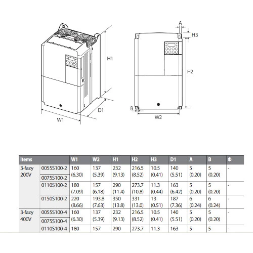 Falownik marki LG z serii S100 o mocy 11kW, prądzie wyjścia 24A. Urządzenie LG z możliwością instalacji jeden przy drugim, posiada także wbudowaną funkcjonalność PLC oraz dławik w obwodzie DC. LSLV0110-S100-4EOFNM posiada możliwość rozszerzenia o dodatkowe funkcje za pomocą kart rozszerzeń.