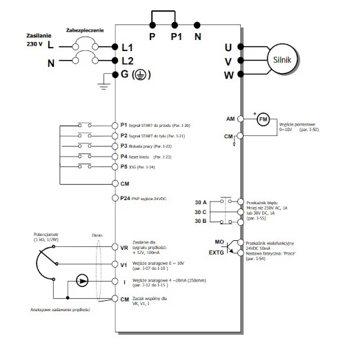 Falownik wektorowy SV022iC5-1F firmy LGserii iC5 o mocy 2,2 kW. Falownik LG zasilany trójfazowo o napięciu 230VAC, wyposażony jest w zabudowany filtr EMC kategorii C3 oraz panel sterowniczy.