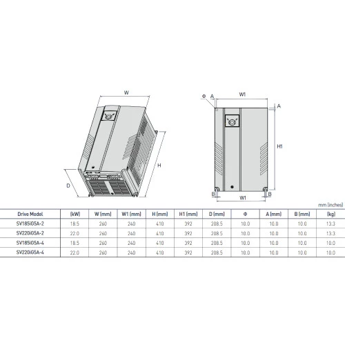 Falownik LG serii iG5A o mocy 22 kW i prądzie wyjścia 45A. Falownik LG z wysoką odpornością na przeciążenia (150 % przez 60 sec). Istnieje możliwość dołączenia rezystora hamującego. SV220iG5A jest wyjątkowo łatwy w instalacji oraz eksploatacji, z możliwością dołączenia klawiatury na kablu długości do 5m.