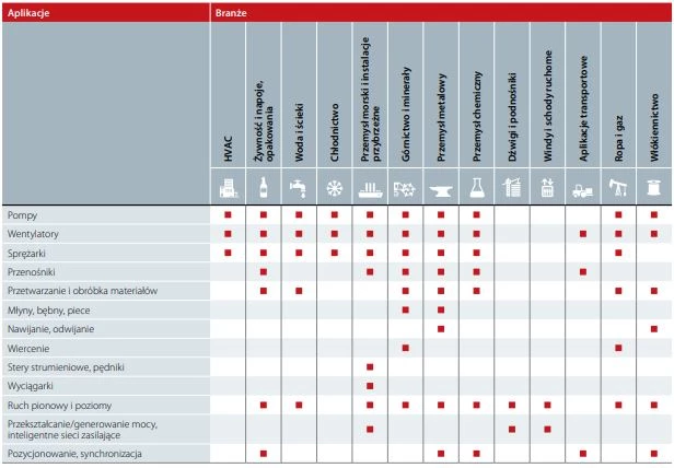 Przemienniki częstotliwości marki Danfoss sprawdzają w wielu gałęziach przemysłu. Sprawdzają się w aplikacjach pompowych, przenośnikach, wentylatorach czy sprężarkach. Innym przykładem zastosowania falowników są aplikacje dźwigowe, suwnice, nawijarki, czy wytłaczarki. W przemyśle kamieniarskim przetworniki Danfoss znalazły zastosowanie w kruszarkach. Falowniki z podwyższonym stopniem ochrony IP66 cieszą się popularnością w przemyśle spożywczym czy farmaceutycznym. Kolejnym przykładem zastosowania przemienników częstotliwości są stanowiska testowe. Dzięki odpowiedniej konstrukcji oraz możliwością komunikacyjną w łatwy sposób można je zintegrować z systemami sterującymi w danej aplikacji. Danfoss stworzył również rodzinę przemienników dedykowaną do wymagających aplikacji z uwzględnieniem wyższych zakresów mocy.