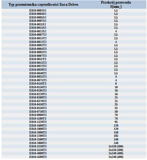 Falowniki E810 Eura Drives o zakresie mocy od 200W do 450 kW. Dostępne są o zasilaniu 1x230 VAC, 3x230 VAC oraz 3x400 VAC. Wektorowe falowniki E810 sprawdzają się zarówno w aplikacjach pompowych jak i transporterach.