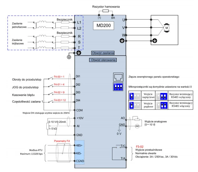 Schemat podłączenia przemienników MD200 Inovance