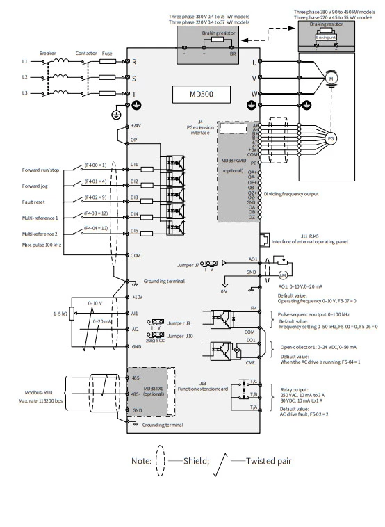 Schemat połączenia falownika MD500 Inovance