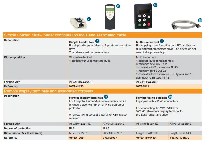 Falowniki Easy Altivar 310 Schneider Electric dedykowane są do współpracy z trójfazowymi silnikami asynchronicznymi. Przetworniki ATV310 dostępne są w zakresie mocy od 0,37kW do 22 kW. Wektorowe falowniki ATV310 znalazły szerokie zastosowanie w wielu gałęziach przemysłu.