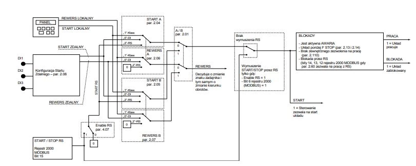 Przykład sterowania start/stop w falownikach Twerd