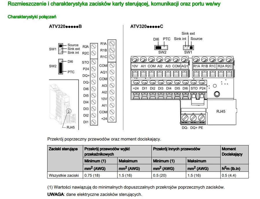 Przemienniki częstotliwości ATV320 Schneider stosowane są w mniej oraz bardziej zaawansowanych aplikacjach. W tej serii występuje 31 inwerterów, których zakres mocy rozpoczyna się od 0,18 kW, a kończy się na 15 kW. Dzięki kompaktowej budowie można zaoszczędzić miejsce. Współpracują z silnikami asynchronicznymi oraz synchronicznymi. Stopień ochrony wynosi IP20. Inwertery te posiadają aż 150 różnych funkcji. ATV320 są zgodne z dyrektywą maszynową 2006/42/EC. Wyposażone są w funkcje bezpieczeństwa: STO,SS1,SLS,SMS,GDL. Dodatkowo falowniki posiadają sterownik PLC. Przemienniki częstotliwości ATV320 mają wbudowany Modbus RJ45, oraz CANopen RJ45. Obwody, które znajdują się w tych inwerterach posiadają klasę IEC 60721-3-3 z powłoką 3C3, dzięki czemu zwiększa się dostępność w niekorzystnych warunkach.