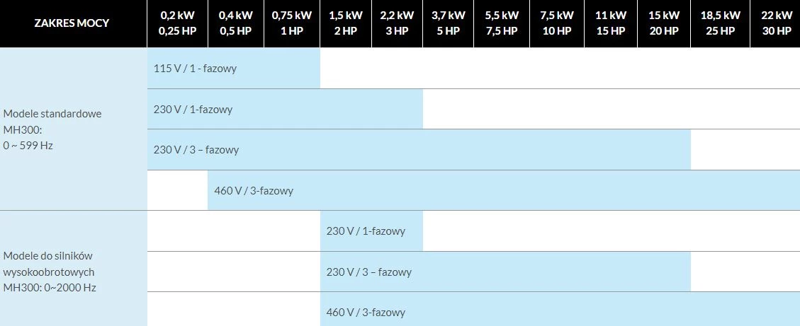 Falowniki te są bardzo proste w obsłudze. Charakteryzuje je wysoki procent oszczędności miejsca, mają wzmocnioną powłokę ochronną. Obsługują silniki z magnesami trwałymi i indukcyjne. Możliwa jest praca w zamkniętej pętli sterowania. Ich rozruch jest dynamiczny, a przyspieszenie wydajne. Posiadają kontrolę hamowania i kontrolę momentu. Częstotliwość wyjściowa falowników serii VFD-MH300 wynosi do 2000Hz w otwartej pętli sterowania. Przeciążalność tych falowników jest równa 120% przez 60 sekund przy pracy normalnej, 150% przez 60 sekund przy pracy ciężkiej i 200% przez 3 sekundy również przy pracy ciężkiej. Inwertery są wyposażone we wbudowany sterownik PLC 5 k kroków. Posiadają również tranzystory hamowania i mają wejście STO.