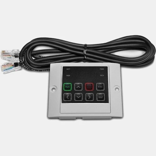 Dodatkowa klawiatura z przewodem LV-S100 dedykowana do falowników LS Electric S100. Zewnętrznaklawiatura LED LV-S100 3M A3MT-S100 składa się wyświetlacza, klawiszy funkcyjnych oraz przewodu o długości 3mb. Obudowa zewnętrznej klawiatury przystosowana jest do montażu na zewnątrz szafy sterowniczej, dzięki czemu operator ma ułatwiony dostęp do parametrów przemiennika częstotliwości. Zdalna klawiatura LV-S100 pozwala na kopiowanie parametrów z falownika na klawiaturę, oraz z klawiatury na falownik.