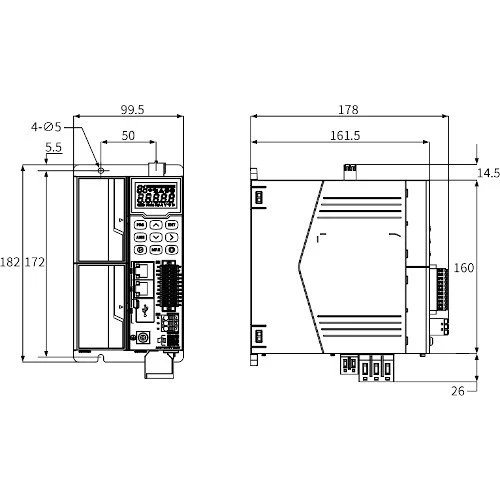 Moduł zasilania MD800-0-2S40B Inovance zasilany napięciem 1x230 VAC. Moc modułu przy pracy ciężkiej wynosi 3,7 kW, zaś przy pracy lekkiej 4,4 kW. Prąd wyjściowy szacuje się na poziomie 41,8A HD/44,6A ND. Pobór prądu szacowany jest na poziomie 41A przy pracy ciężkiej oraz 44A przy pracy lekkiej. Moduł prostownika Inovance MD800-0-2S40B posiada wbudowany moduł hamowania. Urządzenie dysponuje 2 złączami RJ45 oraz złącze USB. Moduł posiada obudowę z tworzywa o wymiarach: 160x 99,5x161,5 mm, oraz wadze 1,9kg.