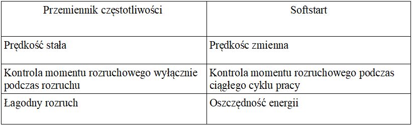 Przemiennik częstotliwości czy softstart?