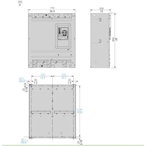 3-fazowy układ łagodnego rozruchu ATS480M10Y serii ATS480 Altivar marki Schneider Electric. Softstarter ATS480M10Y 1000 A współgra z silnikami o mocy od 250 kW do 900 kW. Trójfazowy soft starter o częstotliwości zasilania 50...60Hz, oraz napięciu zasilania 208...690 VAC. Prąd znamionowy tego urządzenia wynosi 1000A ND/ 790A HD, natomiast znamionowe napięcie udarowe wytrzymywane jest równe 6kV. Napięcie sterujące urządzenia łagodnego rozruchu jest równe 24 VDC. Softstart ATS480M10Y wyposażony jest w komunikację Modbus RTU oraz porty RJ45, RS485. Temperatura pracy ATS480M10Y wynosi -15…+40 °C. Softarter ATS480 jest zaopatrzony w stopień ochrony IP20. Wymiary układu łagodnego rozruchu ATS480M10Y: 890mm x 770mm x 329mm, natomiast jego waga to 115 kg. Softstart ATS480Altivar można rozbudować o: moduł komunikacyjny dla Profibus DP V1, moduł komunikacyjny dla Profinet, moduł komunikacyjny dla Modbus TCP/EtherNet/IP, moduł komunikacyjny dla kaskada CANopen, moduł komunikacyjny dla CANopen Sub-D oraz moduł komunikacyjny dla CANopen open style.