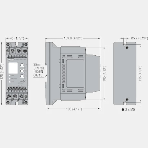 Całościowo sofst starter ADXC został zamknięty w obudowie o stopniu ochrony IP20 i wymiarach 125 x 45 x 109,8 mm.